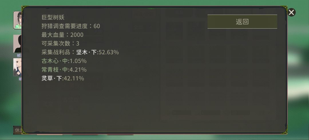 罗妖会+6银收益(没任务还狩猎,赚钱也不是这样赚的啊)巨型树妖只有1银上下,4贡献,纯乐色