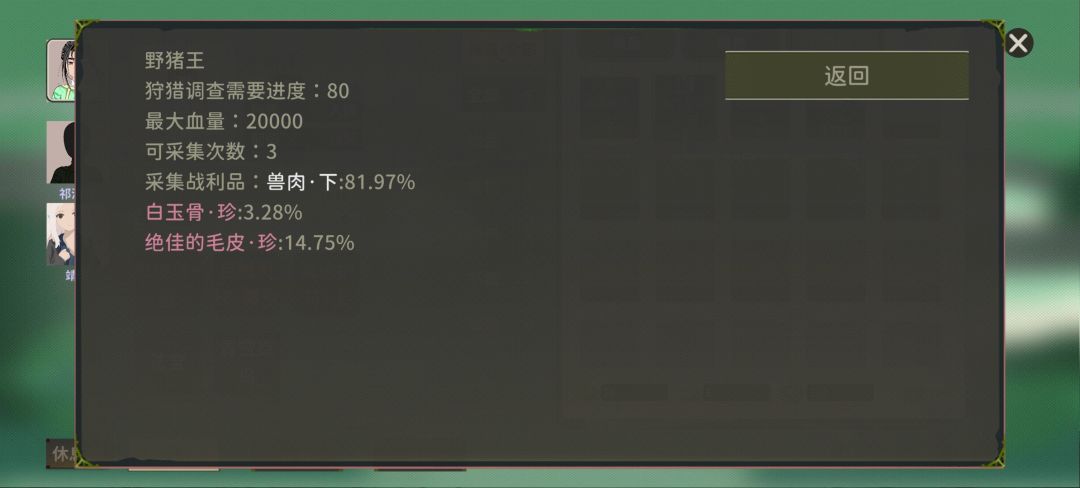必掉:1白玉骨(10银)、2毛皮(4银×2)