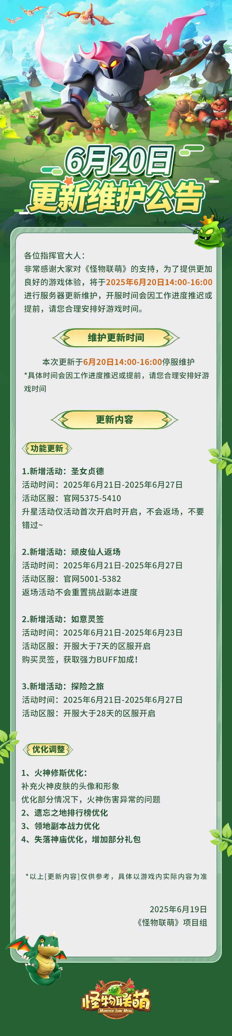 6月20日更新维护公告