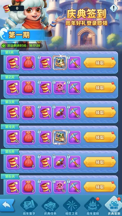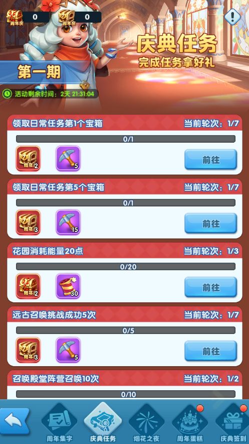 4.庆典任务:活动期间,完成任务可获得活动道具,用于庆典集字中兑换奖励