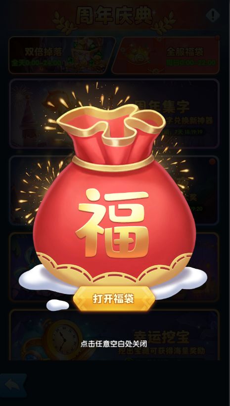 1.庆典福袋:福袋启,福气到。活动期间,在联盟内可收发福袋,将会获得大量奖励!