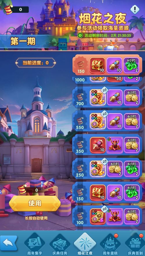 5.烟花之夜:活动期间,可以通过燃放烟花增加进度,完成对应阶段时可以获得阶段奖励