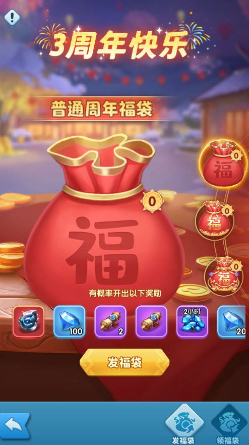 2.全服福袋:活动期间,每日登录可获得一份全服福袋,有几率开出大奖