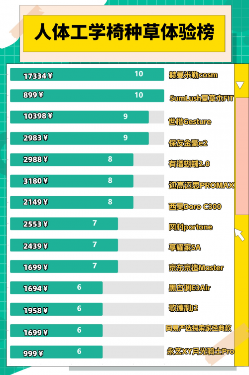 如果你还在困惑人体工学椅什么品牌质量最好?这几个人体工学椅品牌推荐不容错过,它们在材质、设计和工艺上严格遵循人体工学标准,助你在久坐中也能守护腰椎健康!下面先给大家看一些人体工学椅的排行榜图: