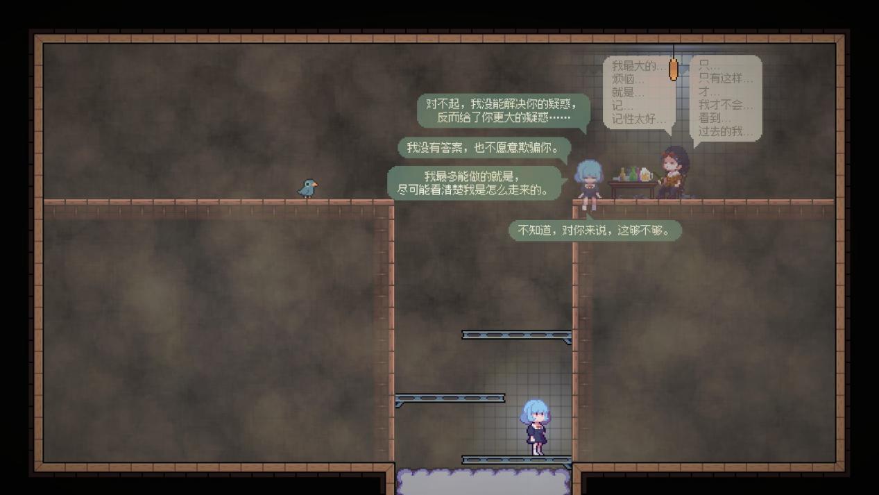 这场平淡又充满勇气的故事虽不至于令我泪流满面,但依然值得感慨万千,或许这便是这篇以叙事向为主的2D解谜游戏带来的魅力罢。