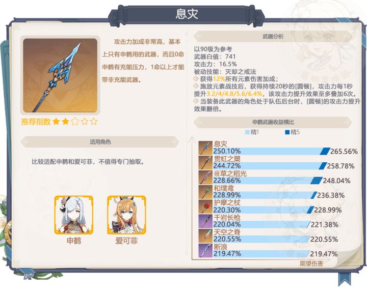 泛用性一般的武器,目前只有爱可菲和申鹤比较适配,有不错的下位替代,不推荐抽取