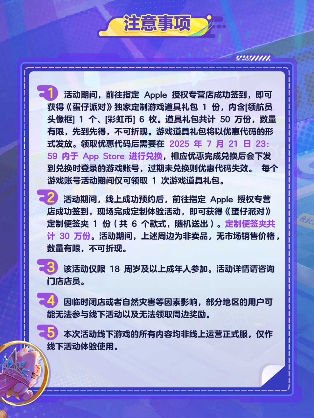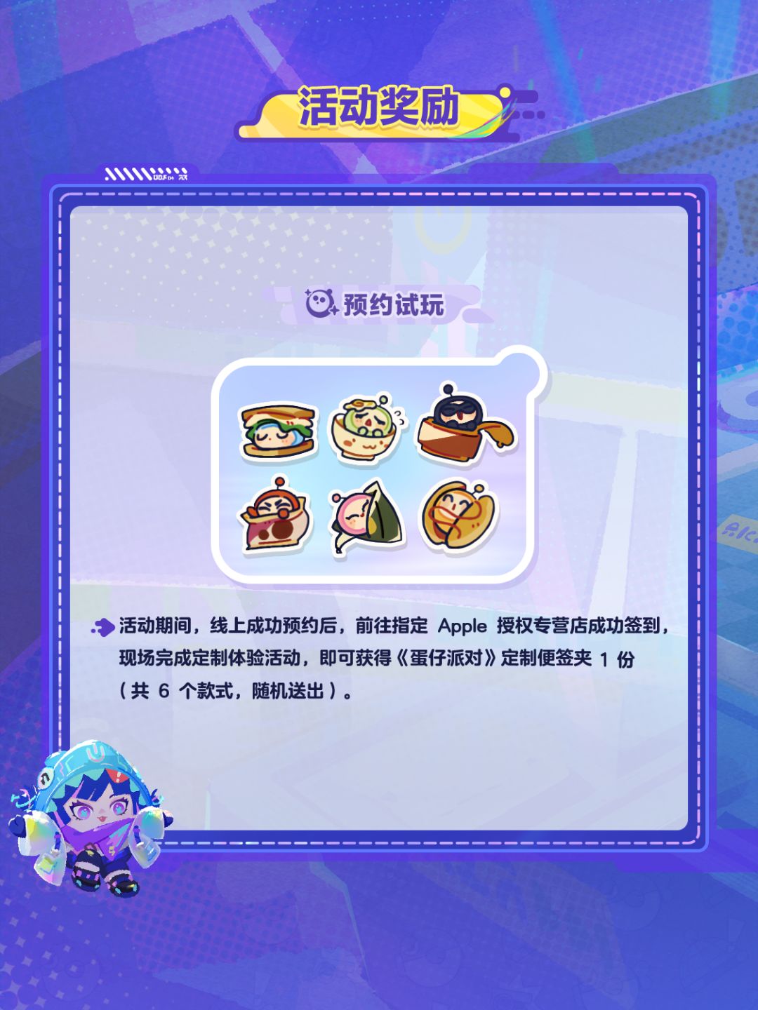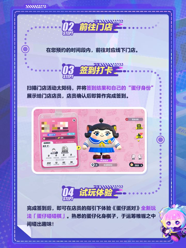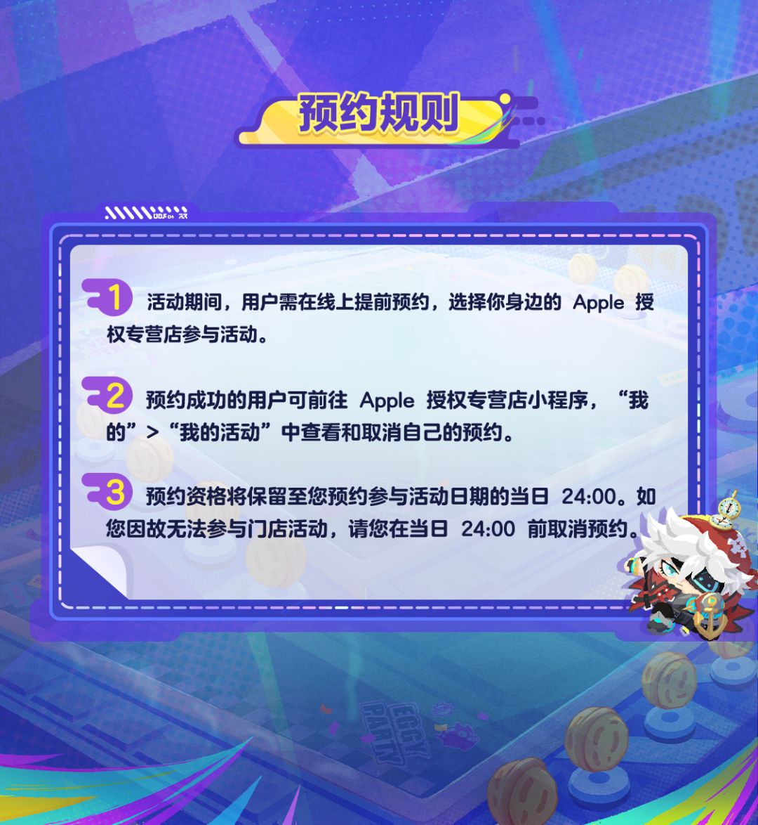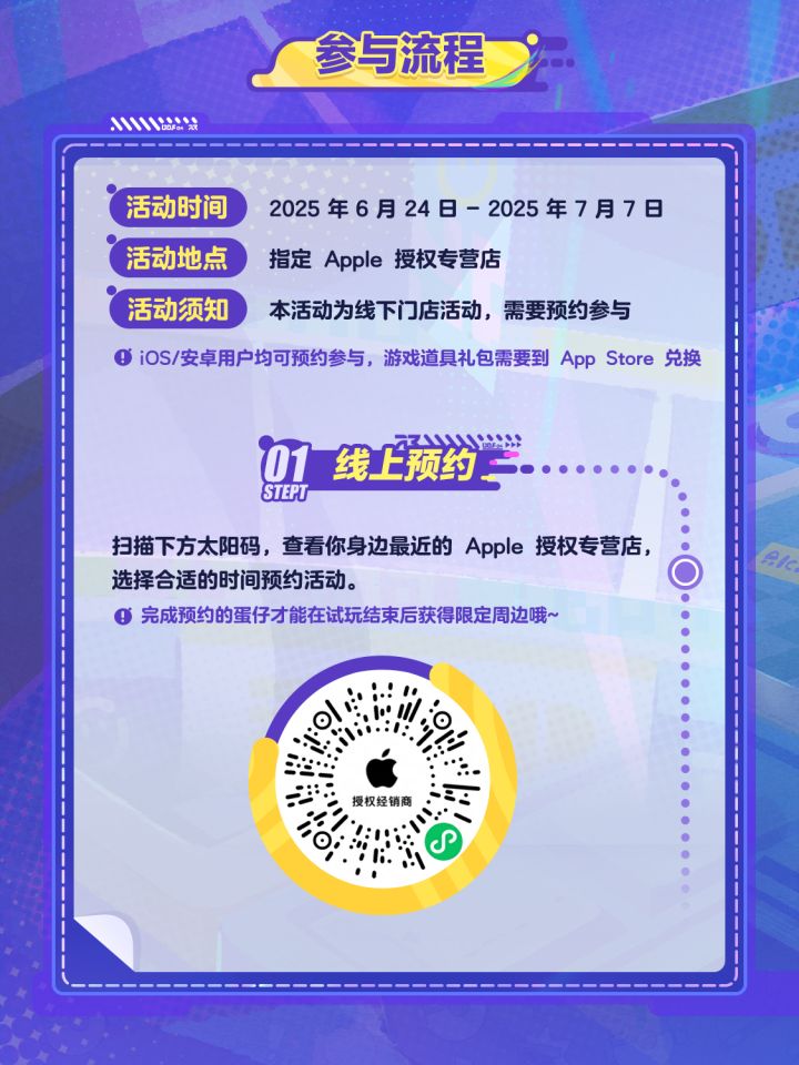 6月24日至7月7日,《蛋仔派对》与 Apple 授权专营店携手开启“蛋仔棋友碰一碰”活动,蛋仔们提前预约,并在预约时间内前往 Apple 授权专营店完成签到,即可试玩全新玩法「蛋仔碰碰棋」!