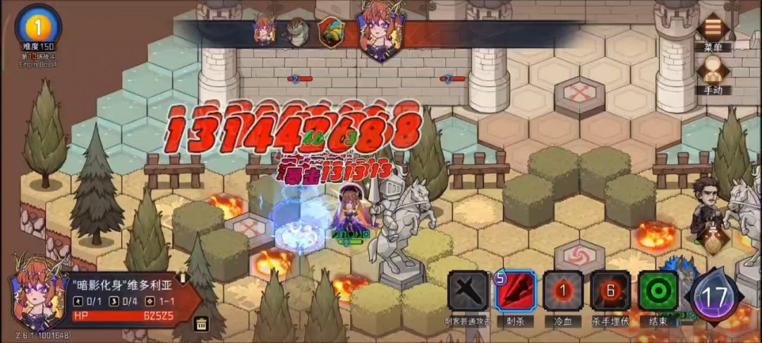 - boss选择:理论上2个boss必须要有一只会召唤的boss才能过,起义军,大主教,蛇神,帝国军,金甲虫,大鳄鱼等,暗刺需要这些小怪来积累被动,词条buff和能量,并且需要做到一回合全清小怪才有可能完成boss击杀,因为另外一个boss大概率很不好对付,而且第二回合全清debuff后,暗刺输出就很难再短时间击杀boss了。