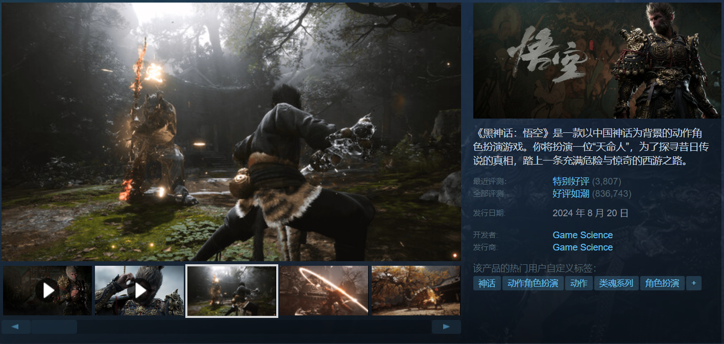 首次打折!《黑神话:悟空》PC全平台开启8折特惠,正式上线!