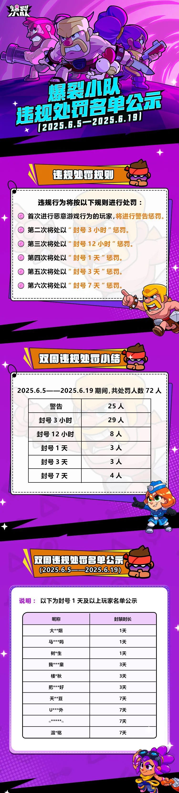 爆裂小队违规处罚名单公示(6.5—6.19)