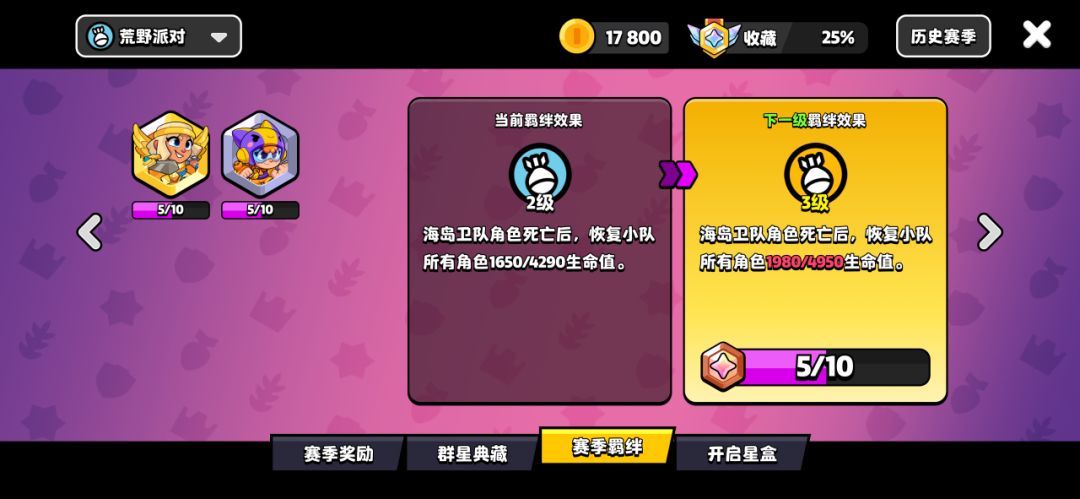 ● 赛季羁绊强化——收集真爱角色的专属徽章,提升徽章星级!达成收集目标,即可强化赛季羁绊效果!