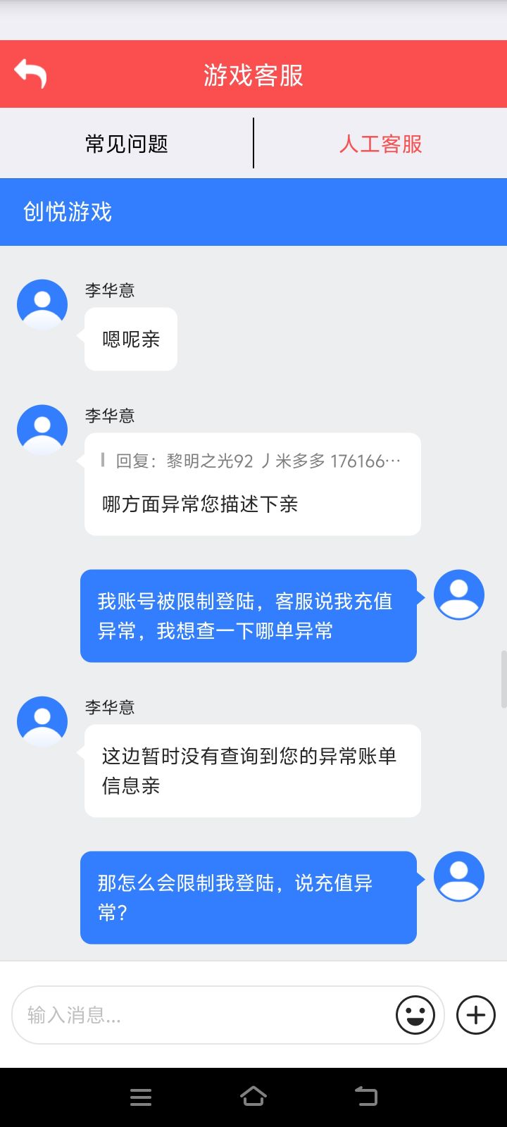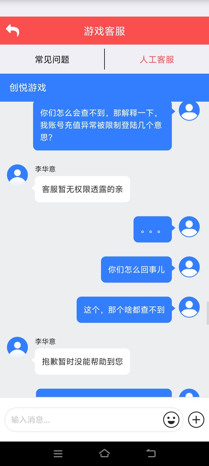本人充值5000+ 昨日发现账号限制登陆,问客服怎么回事儿,说我充值异常被封,我找客服要求查询异常订单,来个无权查询,我的乖乖,牛的狠!劝大家快点跑路,4.3分的评价我感觉都给高了!!!