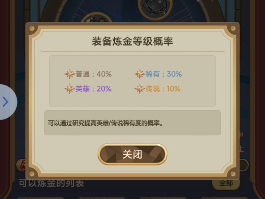 装备炼金的概率可以查看,就在标题左边的小感叹号里