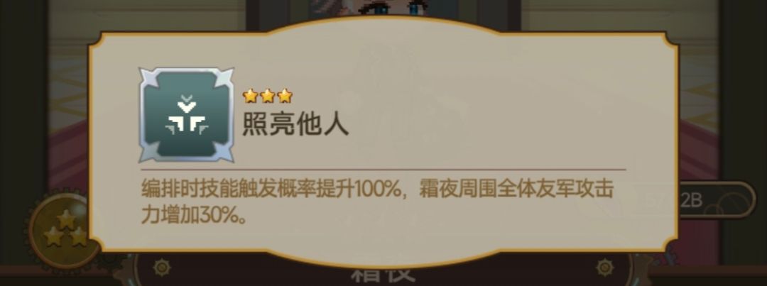 有一些效果是全体,有些是周围,周围就是紧挨着这个角色的另外两个角色和船长才能吃到加成。还有一个霜夜的技能,是“周围全体”