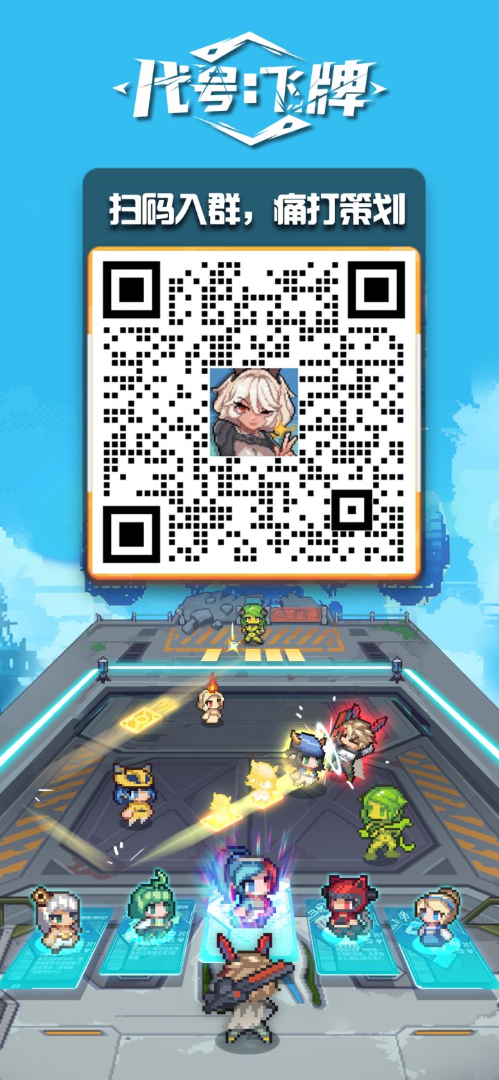 为了更好的和大家保持交流,我们筹备了全新的官方微信群,后续所有游戏信息都将在微信群中通知,速速扫描二维码重新加入《代号:飞牌》的官方社群,激情开聊,痛怼策划吧!