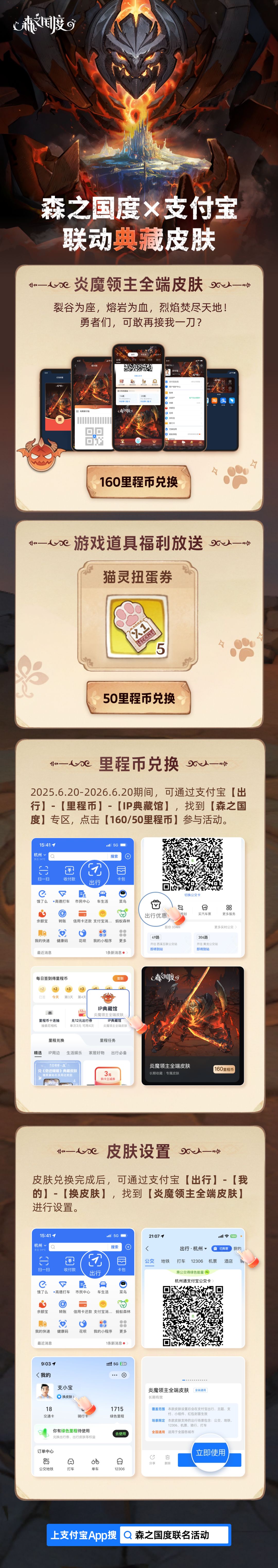 森之国度x支付宝联动已开启!攒里程兑炎魔领主全端皮肤