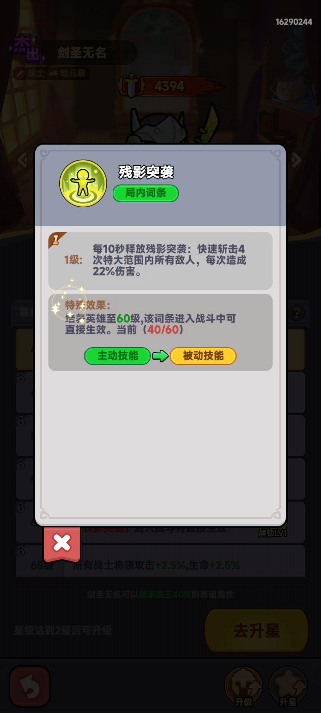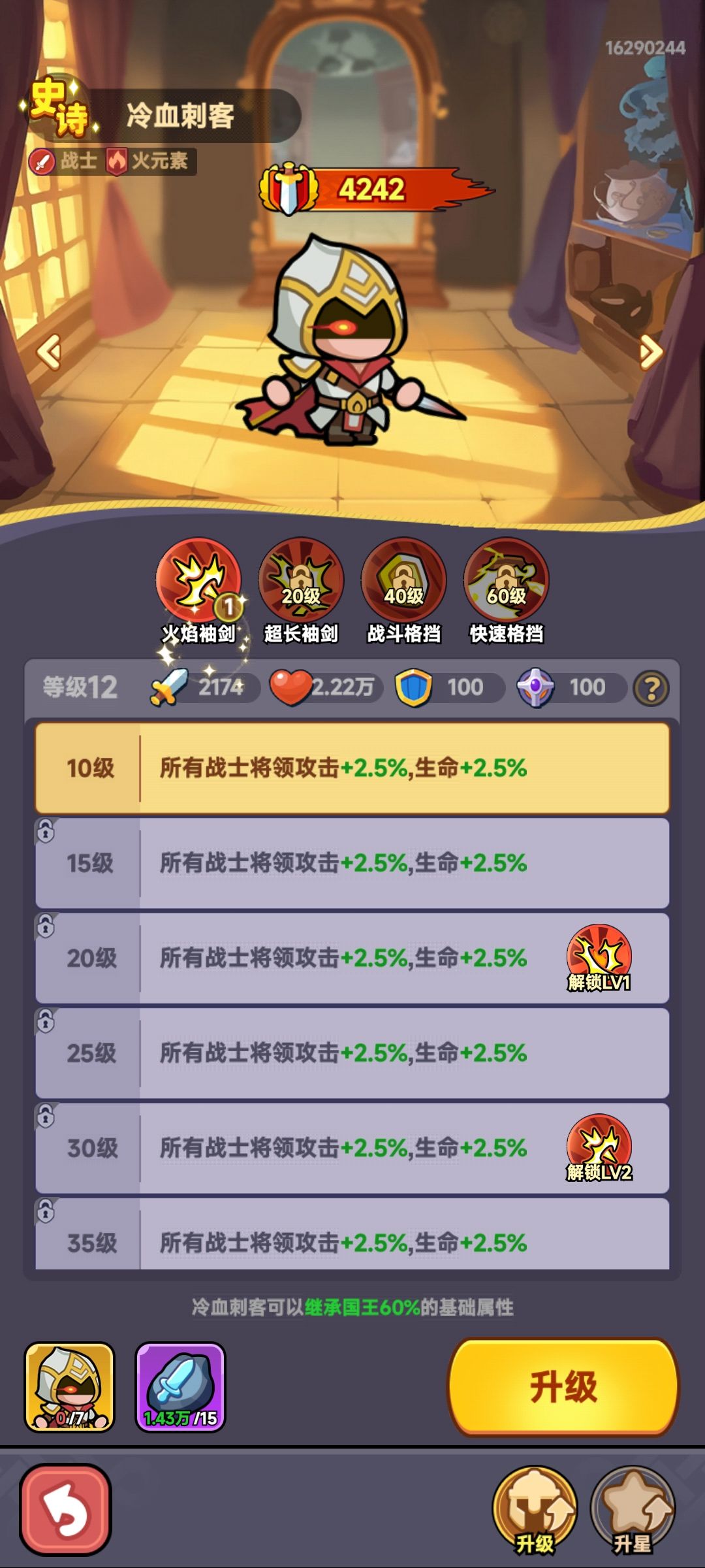 剑圣无名,一二技能都是造成次数类型的范围攻击伤害,不管是前期还是中期都有许多的大数量脆皮小怪,如果运气好,剑圣无名等级比凯伦要高,可以选择他来打到15关,后续解锁的新玩法也需要他,属杰出中品。