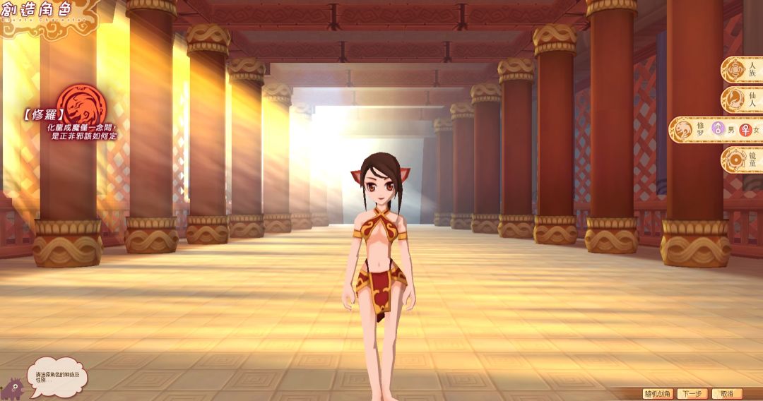 游戏伊始,需要玩家自行的在四个种族“人族”、“仙人”、“修罗”和“镜童”里选择一个角色,不得不说建模确实很粗糙,不过还是颇为复古的。而作为“不走寻常路”的我自然选择了不寻常的“女修罗”,但你还真别说,这“女修罗”看着还真是颇有韵味。