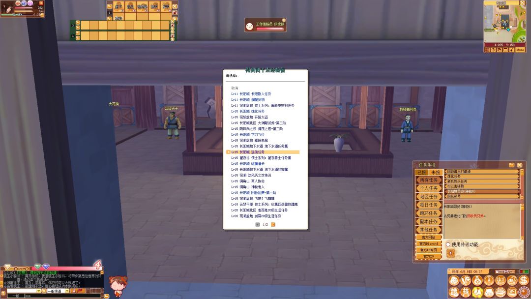 除此之外,游戏的地图也是丰富十足,光是刚出新手村来到的长阳城,其区域以及NPC的数量就极多,可以说是那些在武侠游戏中所常见的各类型的当铺应有尽有,什么武器铺、饰品铺、钱庄、客栈等等全都有! 我个人觉得其中最有意思的是钱庄和抽奖庄,钱庄竟然有独立的密码可以管理物品,抽奖庄则可以玩抽奖以小博大! 除此,人力中介也是蛮有意思,喂喂喂,古代社会也有中介的吗哈哈哈!在这里会有人发布任务,完成后会给予玩家一定的报酬。