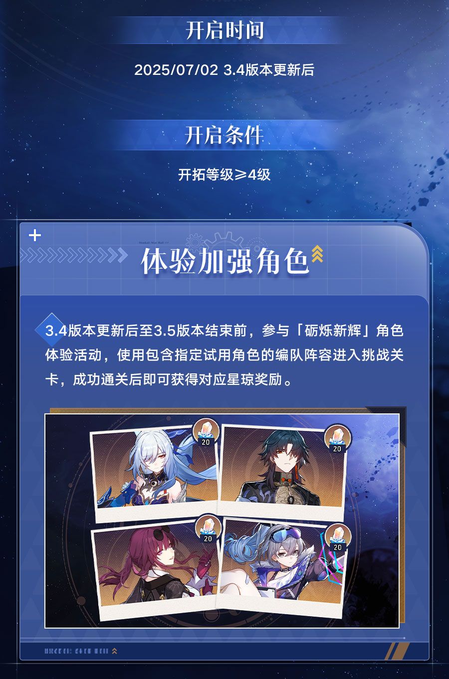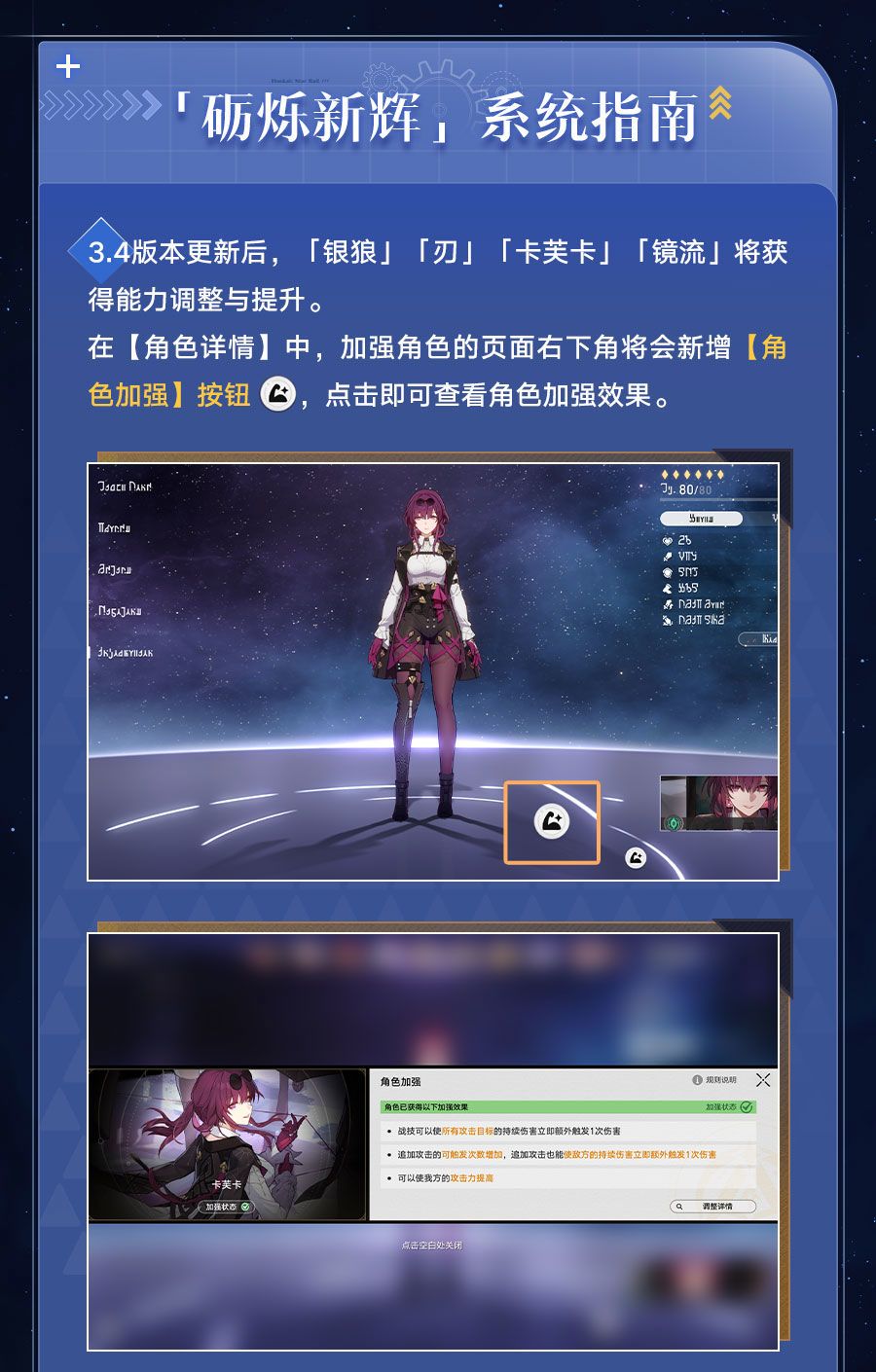 开拓者好呀,角色加强系统「砺烁新辉」即将于3.4版本更新后上线!