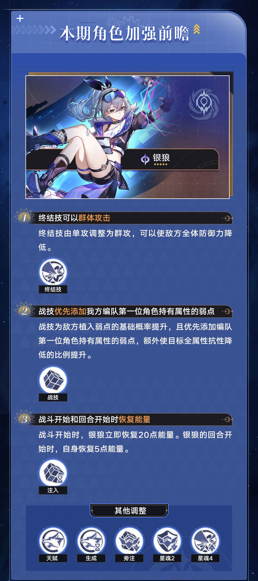 本期将为开拓者带来角色加强系统的使用指南,以及「银狼」「刃」「卡芙卡」「镜流」的强化速览!和帕姆一起看看帕~