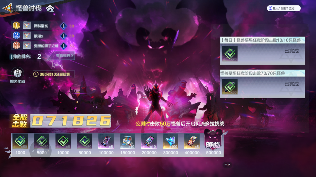 4.排行榜优先按阶段排名,同阶段玩家按击败怪兽数量排序: