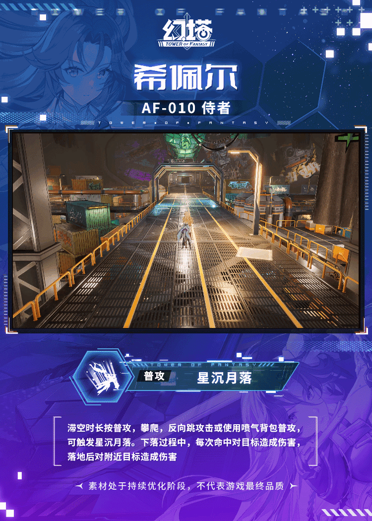 滞空时长按普攻,攀爬,反向跳攻击或使用喷气背包普攻,可触发星沉月落。下落过程中,每次命中对目标造成伤害,落地后对附近目标造成伤害