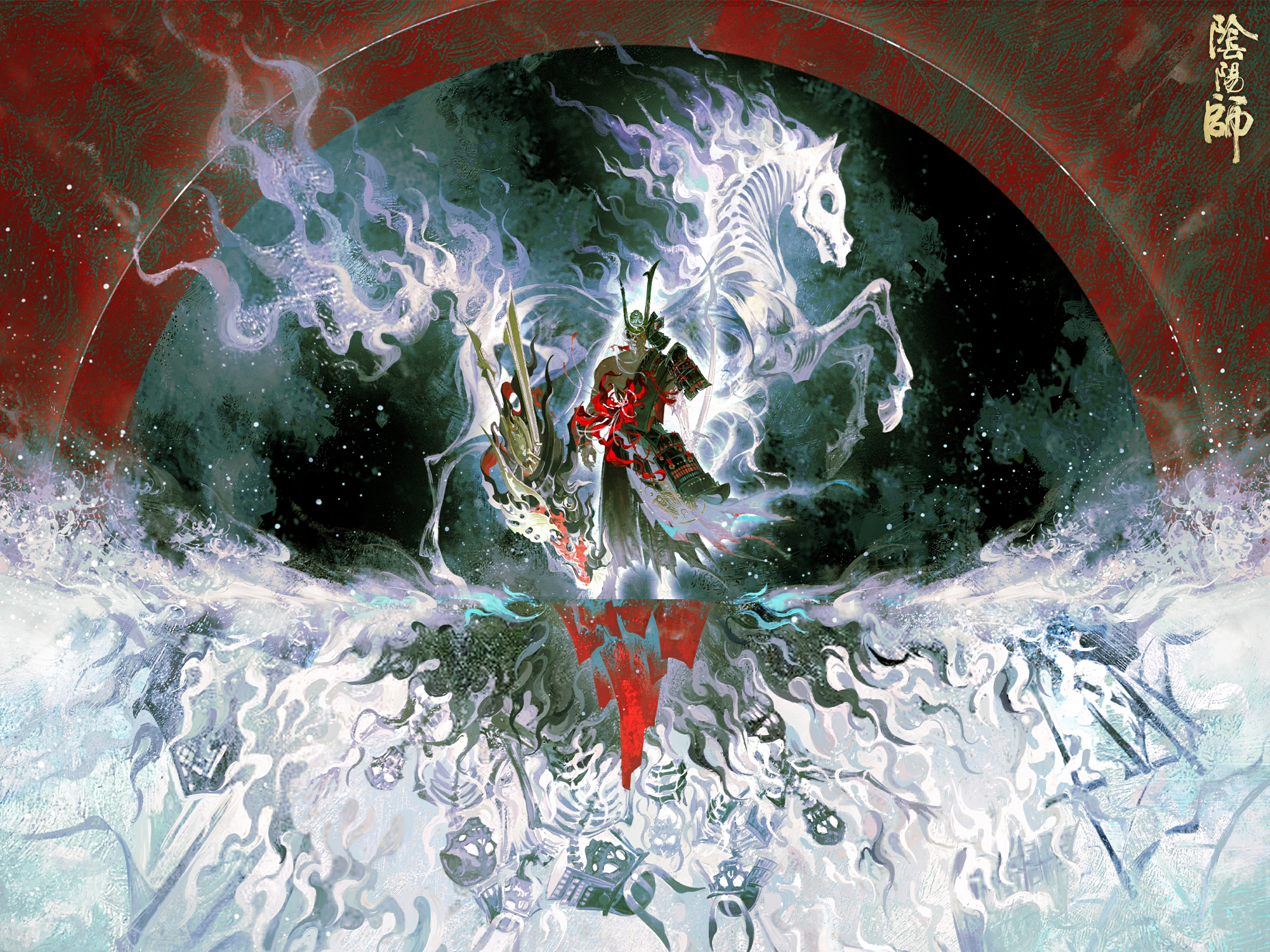 半抹残阳映亮征途,赤色花瓣飘扬纷飞,旗帜高扬,队伍步伐齐整,为誓约执刃坚守,以待重振平氏荣光。