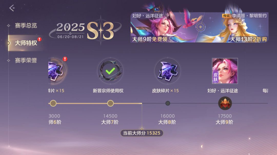 入口:游戏大厅-任务-大师生涯-大师特权