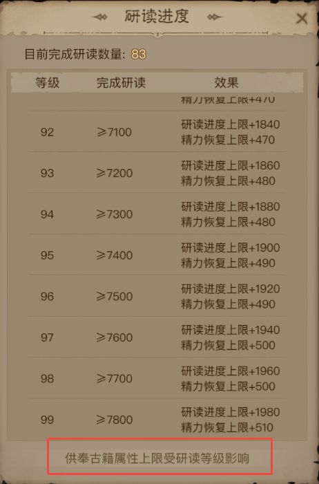 4.通过供奉激活的高级属性总上限受研读进度影响。
