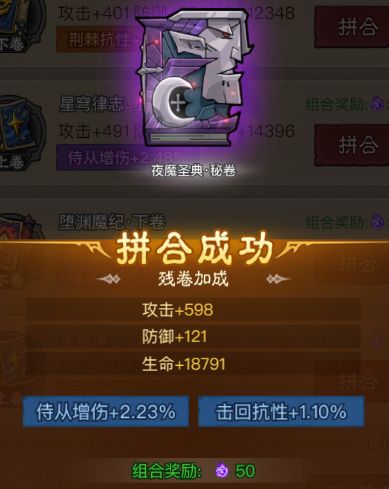 6.在拼合时还能立即获得对方古籍的基础属性,不过不能超过自身残破古籍属性一定倍率。找战力高的勇士拼书可获得更多属性。