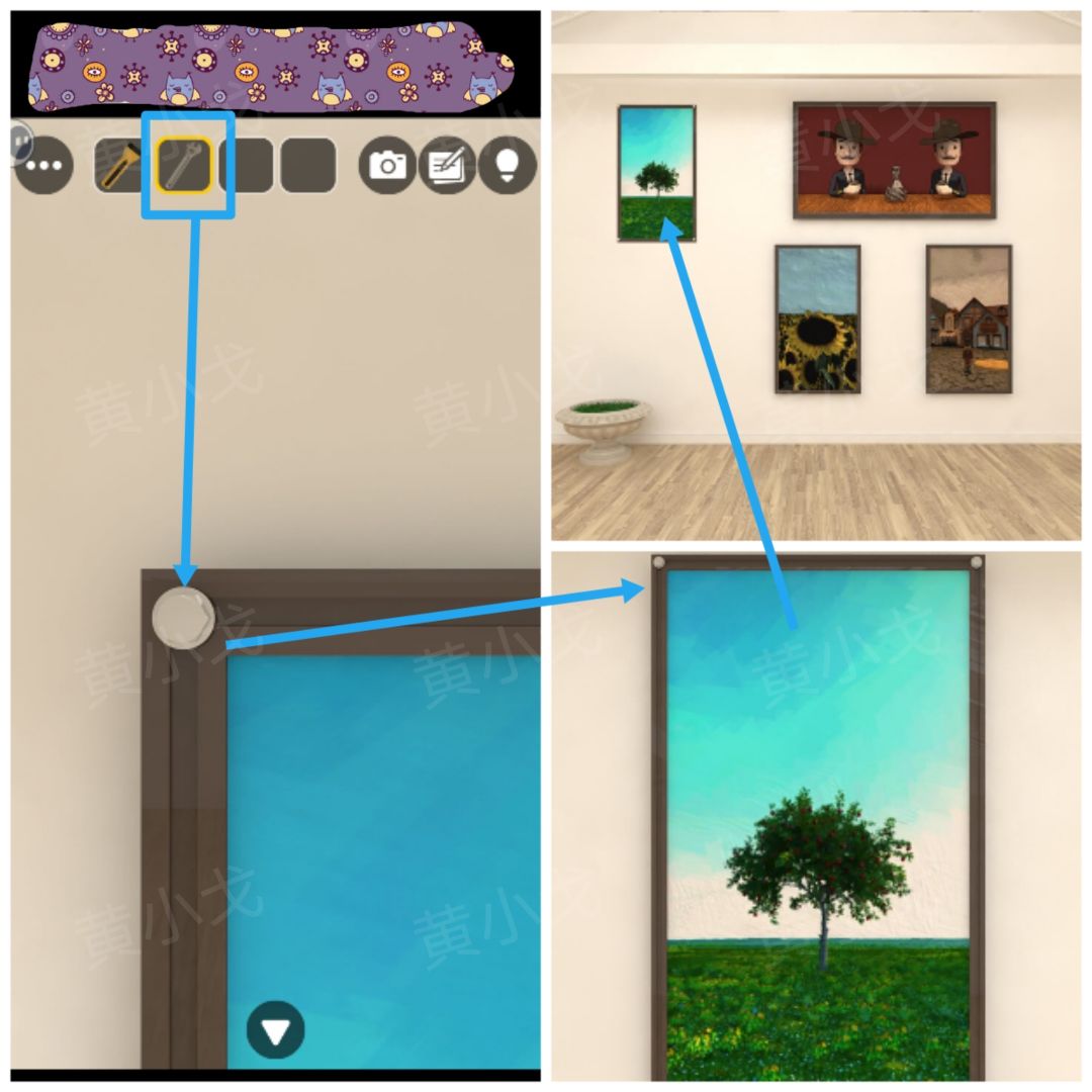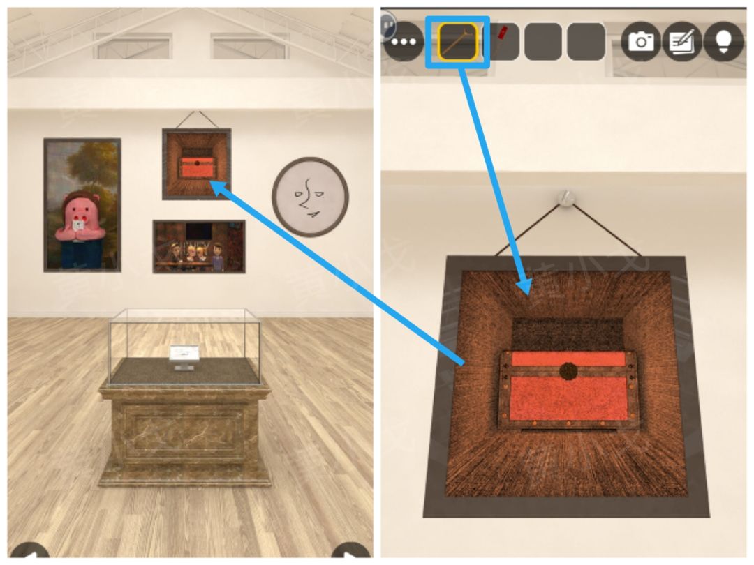 22.点击画有树的画像,用【扳手】拧下画框上的螺丝钉,画像掉落