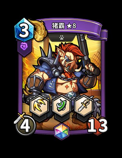 猪霸拥有<霸主>技能,除基础攻击以外的技能触发两次,配合某些特定装备可以打出意想不到的效果。