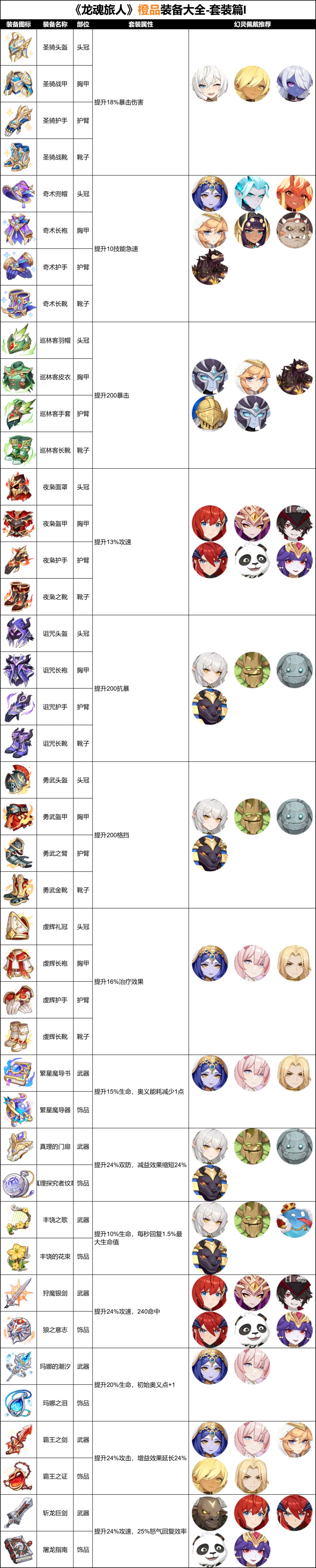 《龙魂旅人》橙品装备大全-套装篇I