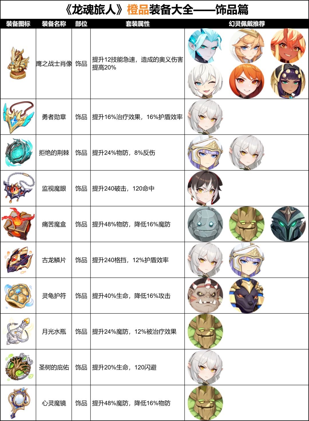 《龙魂旅人》橙品装备大全——饰品篇