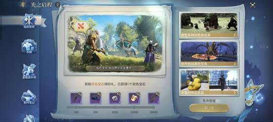 右上角的水晶图标为光之启程任务,光之启程是新角色创建后的任务。
