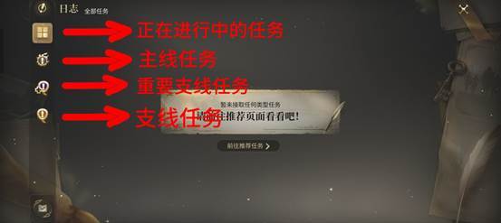 左上角的感叹号UI是任务按钮,可以与下方的队伍按钮通过单击的方式来回切换。双击该图标后则进入任务界面,可以看到玩家当前进行中的任务以及已经完成的任务。
