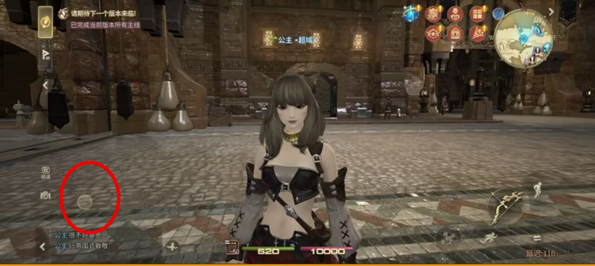 左侧的轮盘为人物操纵轮盘,可以控制角色移动。