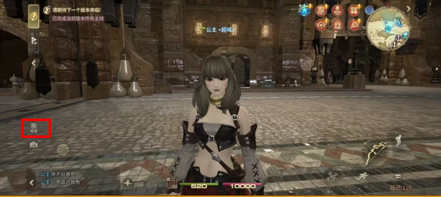 点击左下方的方框,可以进入消息界面。右上角可以切换消息频道与好友列表。设置则可以选择显示的频道。