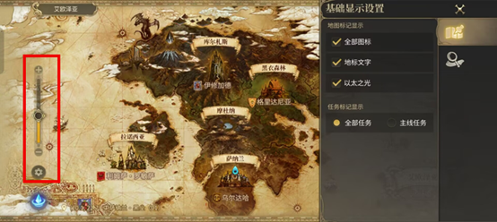 左侧拉杆可以放大或缩小地图,设置可以设置地图所显示的信息。