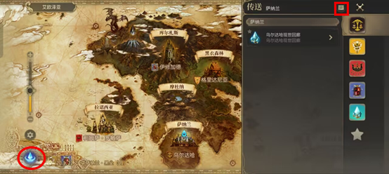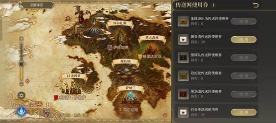 点击左下方的传送小水晶后出现传送列表,而传送界面还隐藏着传送券的使用界面~