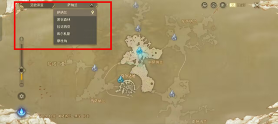 左侧上方将地图分为不同地区,可以根据需求切换。