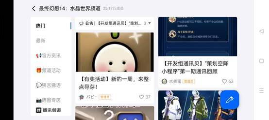 点击左侧的频道图标可以直接进入腾讯频道界面。