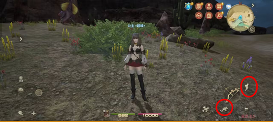 那么最后就是战斗与动作相关啦,下图中圈出的图标分别是闪避和跳跃。闪避可以取消技能僵直并移动一段距离。