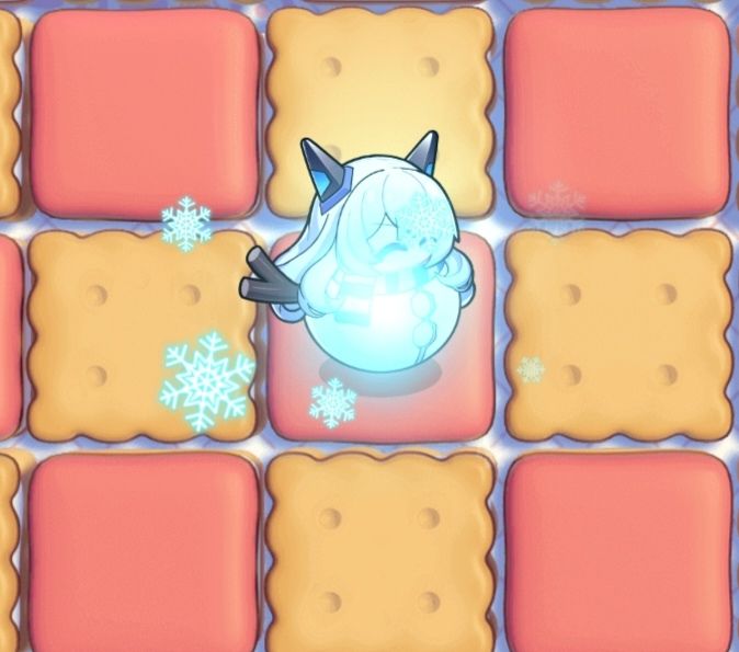 寒冰系列:该角色属于寒冰系列,对于寒潮有很高的抗性(正常图不吃冻结 )。攻击会施加冰冻积蓄(冷冻条满了会受到冻结状态,部分寒冰角色拥有破冰攻击,能对冻结状态敌人额外造成较高伤害),在流水世界释放奥义时,将会在周围3*3范围与所有非水系角色位置创建浮冰地板。 浮冰地板持续120秒。
