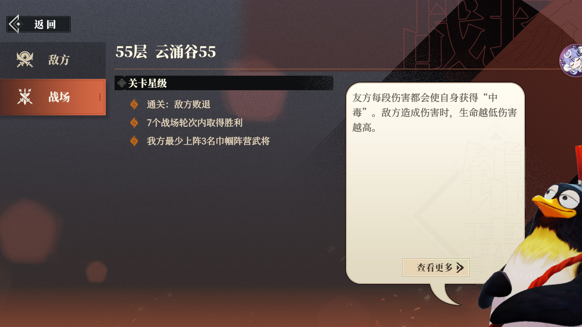 少将军们好!今天由玩家@ 三幻山鸡 为大家带来逐鹿第55层的玩法详解,少将军们可以参考一二。