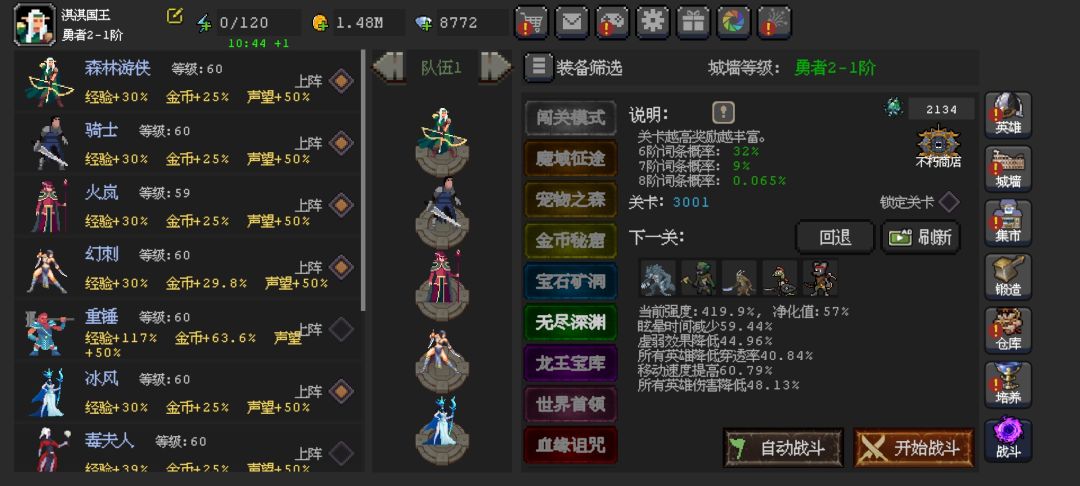 需要攻略的随意问,无旗帜,神器只有连击和星辰仗,且都是一级,宠物也都是广告开蛋给的1只,像我这么黑的估计很少吧,活动就没拿到过奖励,只能自强了,4转这属性能过3000+还是很少的吧,估计很多人属性比我都高,神器什么的比我都多,所以应该能帮到很多卡关的伙伴吧,目前属于略有压力,BOSS能走1/3了!