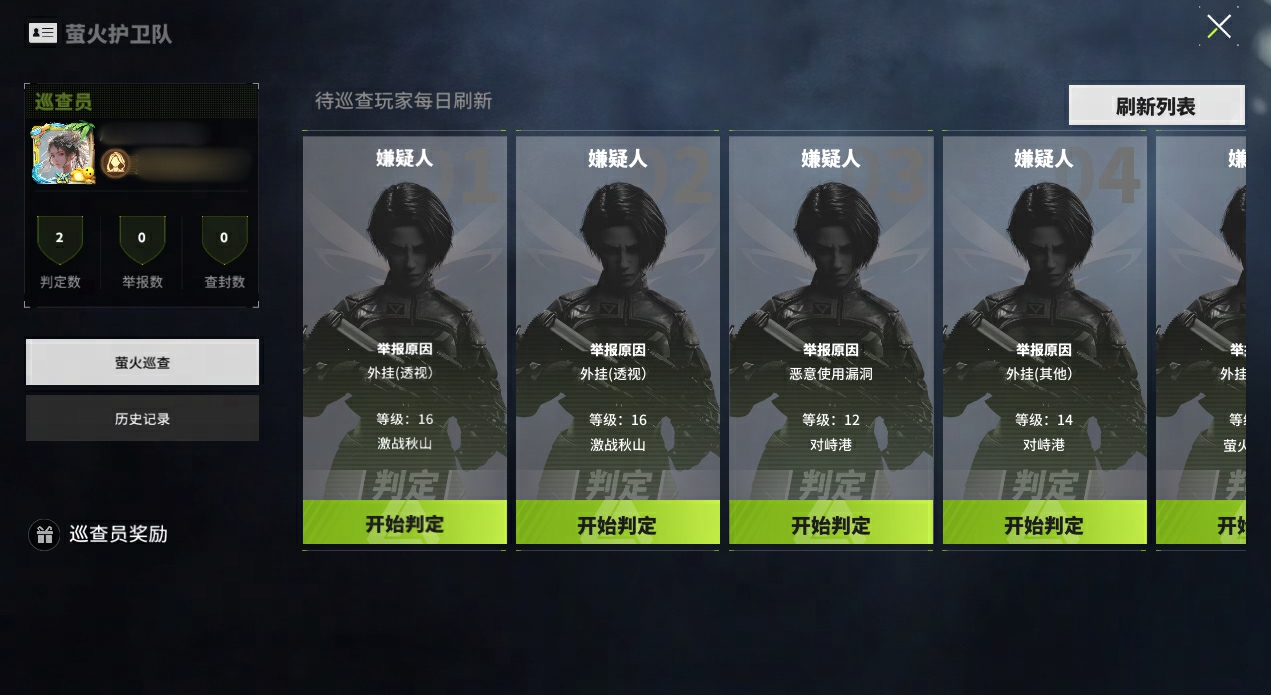 同时巡查系统中也已经上线对局监控系统,巡查员们可积极上传可疑对局进行判定,让外挂无所遁形!