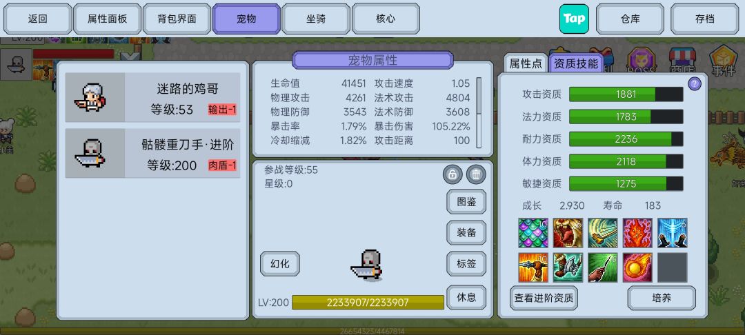 期间刷的蛋都要时不时孵化,后期需要一个3.0,没强迫症可以2.99,上面爆技能书,丹药,升星石存仓库