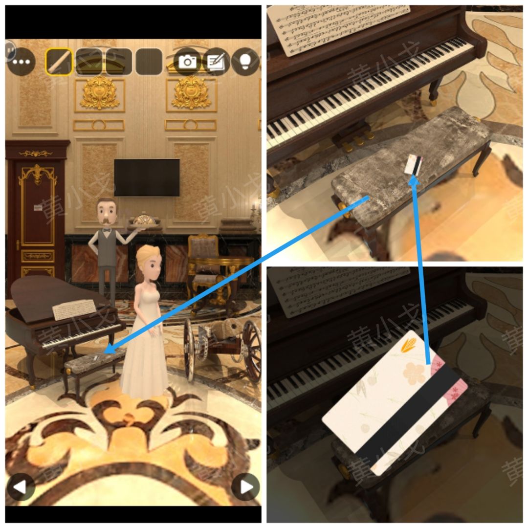 9.拾取钢琴凳上的【卡】